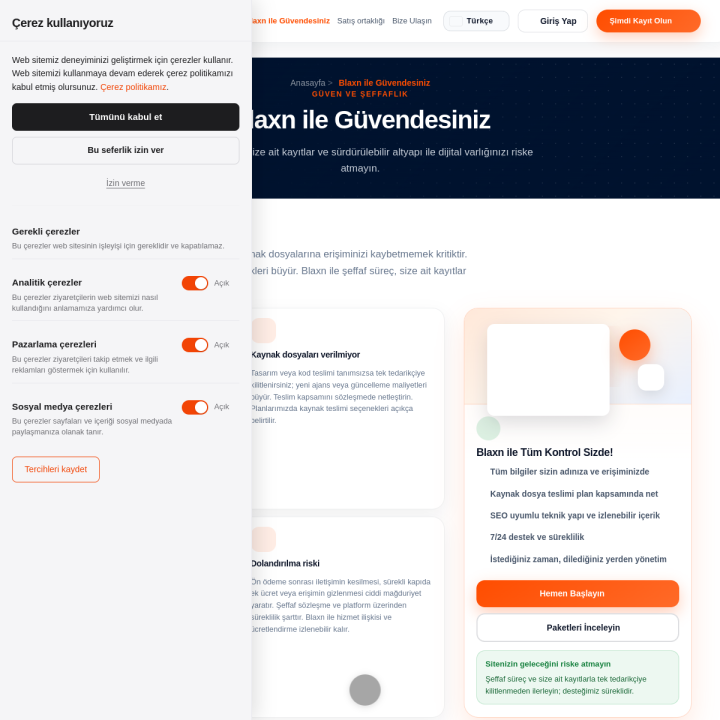 Without clear design/code handover you are locked to one vendor; future changes get expensive. Define delivery in the contract. Blaxn states source options clearly per plan.